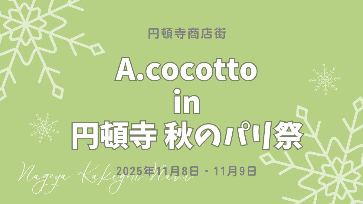A.cocottoさんが「円頓寺 秋のパリ祭 2025」に出店されます。1年に1度、円頓寺商店街がパリの魔法にかかるマルシェイベントとともに、パリの風を感じるかき氷を楽しんでみませんか?